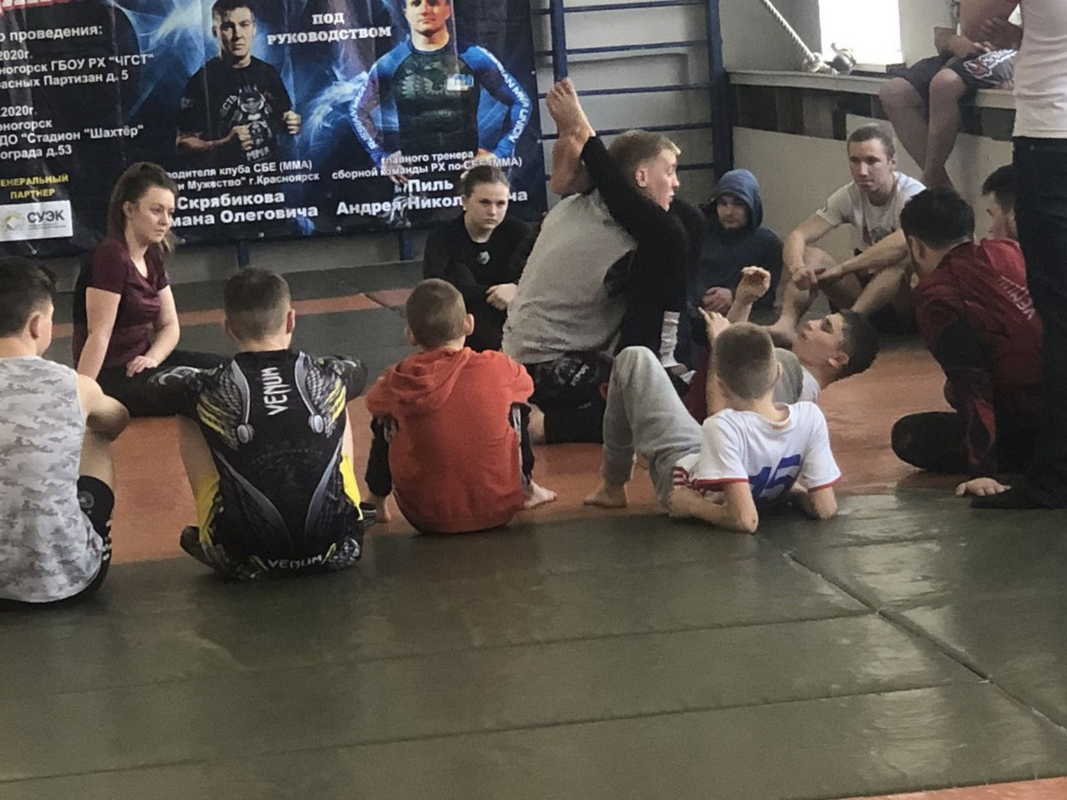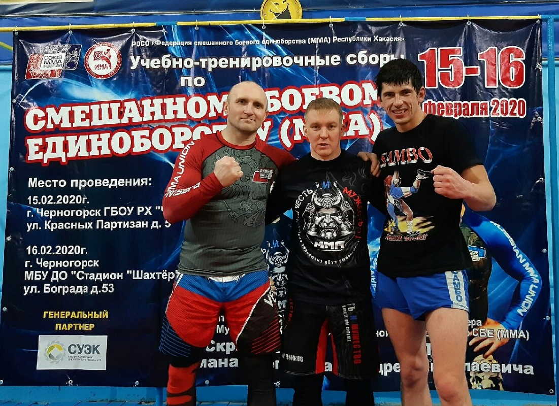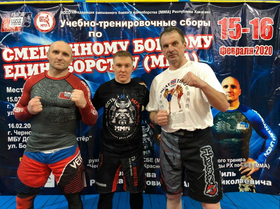 В целях подготовки к чемпионату и первенству Сибирского федерального округа по смешанному боевому единоборству (ММА), в зале единоборств ГБПОУ РХ «Черногорский горно-строительный техникум» и зале единоборств МБУ ДО «Стадион «Шахтёр» 15-16 февраля 2020г. прошли учебно-тренировочные сборы под руководством руководителя клуба СБЕ (ММА) «Честь и Мужество» Скрябикова Р.О. и главного тренера сборной Республики Хакасия Пиль А.Н.